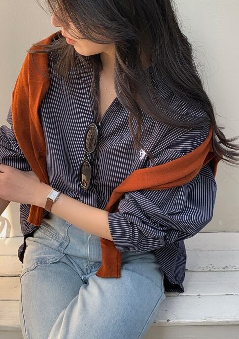 【送料無料】トップス シャツ 長袖 ストライプ 大きいサイズ ワンサイズ 韓国系 春 10代 20代 30代 レディース N1154