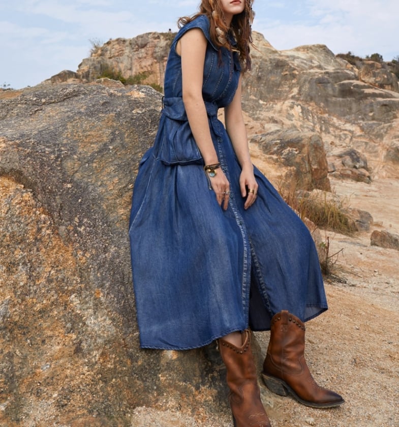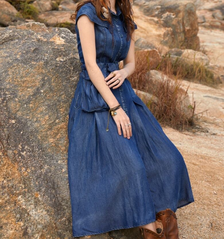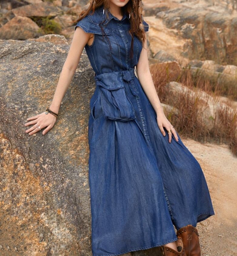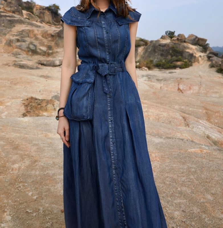【送料無料】 ワンピース ワンピドレス デニム 襟付き ノースリーブ 前開き ロングスカート フレア スリット Aライン ハイウエスト ウエストベルト ウエストポーチ ラフ 大人可愛い きれいめ シンプル おしゃれ シック フェエミニン ガーリー ゆったり 体型カバー 着痩せ 韓国系 オルチャン 人気 トレンド 新作 春 夏 秋 20代 30代 40代 お出かけ イベント 旅行 リゾート デート ママ 通勤 通学 デイリー 普段着 着回し インスタ映え 70287