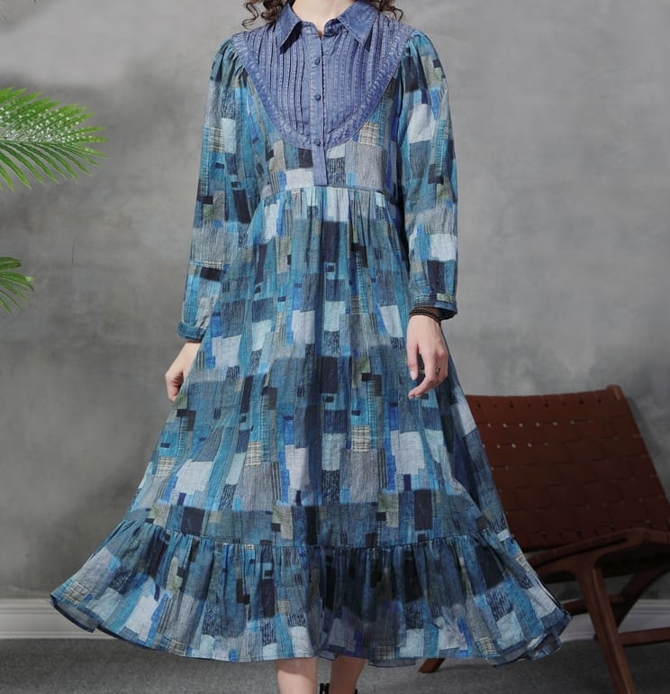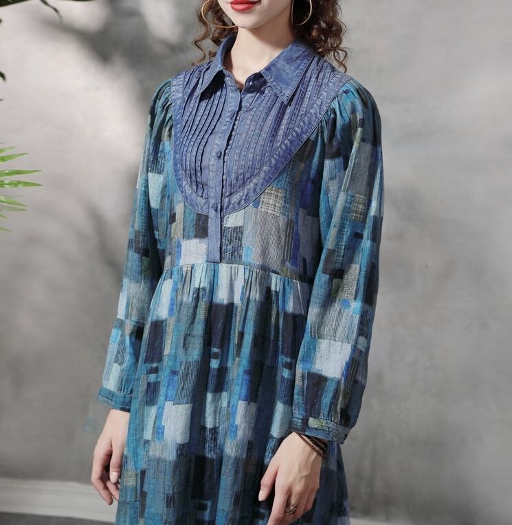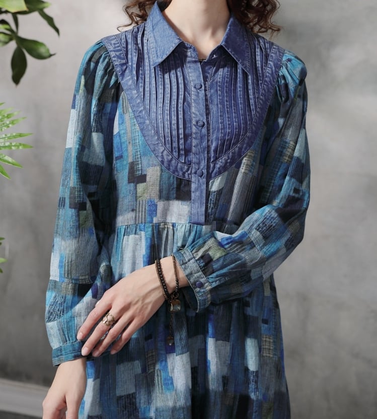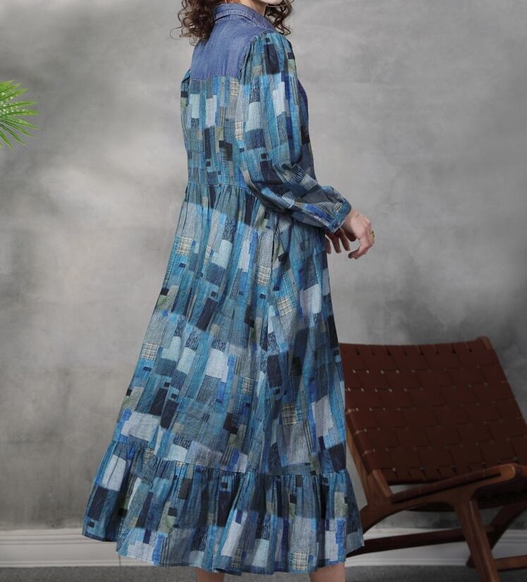▪大人可愛い印象を与えるデニムワンピースです。襟付きのデザインと長袖がシックな雰囲気を醸し出し、おしゃれさを際立たせています。また、ハイウエストとロングスカートのAラインは体型を美しくカバーし、ゆったりとした着心地でデイリーコーデにもぴったりです。