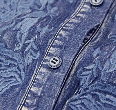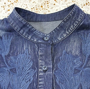 ▪上品で大人可愛い印象を与えるデニムシャツです。ウエストを絞るスタイルは体型を美しくカバーし、カジュアルでありながらもきれいめに仕上がっています。刺繍で施された植物柄が、ガーリーさをプラスします。