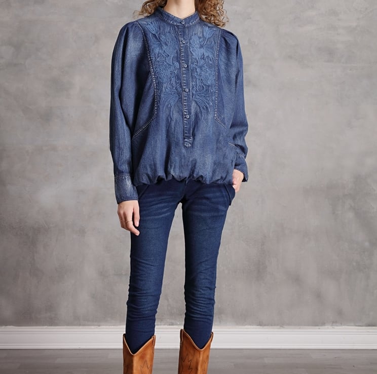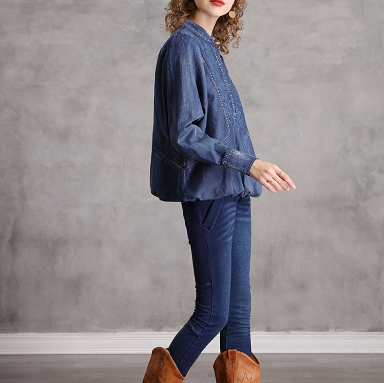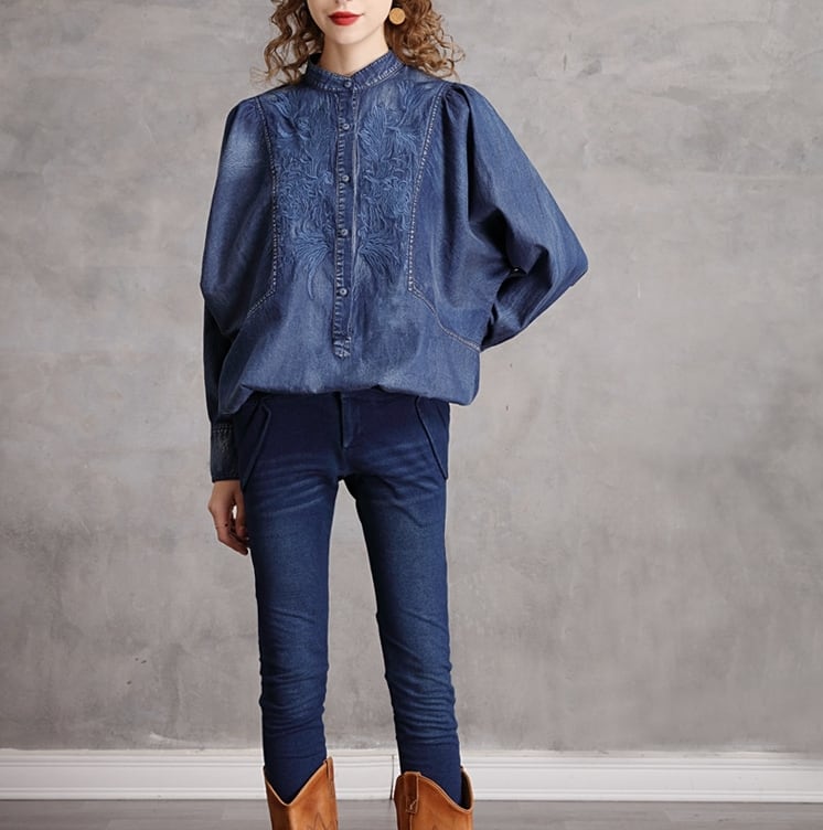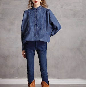 【送料無料】 トップス シャツ デニム 長袖 ボタン 刺繍 植物柄 ウエスト絞り ラフ カジュアル 大人可愛い きれいめ シンプル おしゃれ シック フェエミニン ガーリー ゆったり 体型カバー 着痩せ 韓国系 オルチャン 人気 トレンド 新作 春 秋 20代 30代 40代 お出かけ イベント 旅行 リゾート デート ママ 通勤 通学 デイリー 普段着 着回し インスタ映え 70294