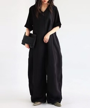 【送料無料】 ジャンプスーツ 半袖 ワイドレッグ Vネック カジュアル 20代 30代 レディース N1183
