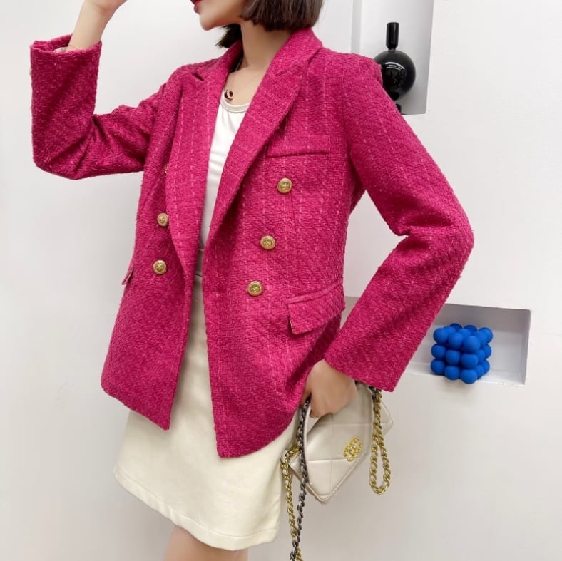▪大人可愛いデザインの長袖ジャケットは、秋から春にかけて活躍必至の一着です!金ボタンや前開きのデザインがエレガントさを引き立てつつ、カジュアルにも合わせやすいシンプルさが魅力。デイリーから特別なお出かけまで幅広いシーンでご利用いただけます。