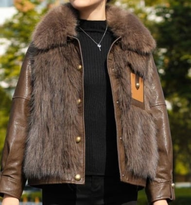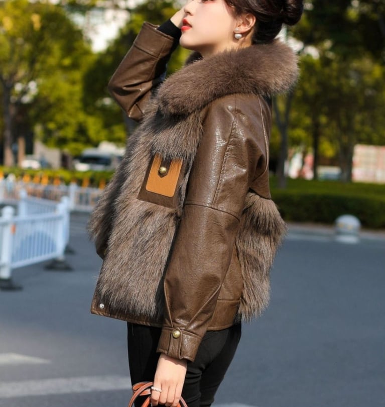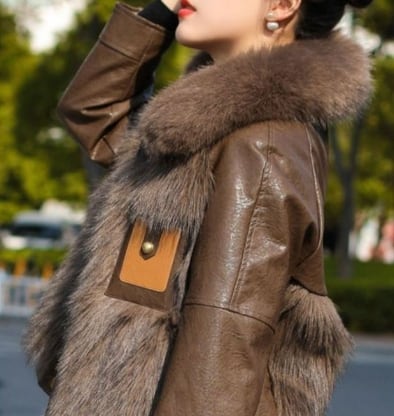 ▪この冬のスタイルを華やかに演出する、合成皮を使用したコートが登場しました!長袖と前開きのデザインが特徴で、ボタンやポケットもついており、機能性とファッション性を両立させています。ふわふわのファーがあたたかさを保ちつつ、シンプルでありながらエレガントな雰囲気を醸し出します。