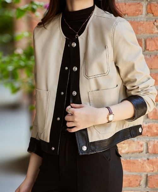 軽やかな薄手ジャケットが、ヨーロピアンテイストの上品さをさりげなくプラス