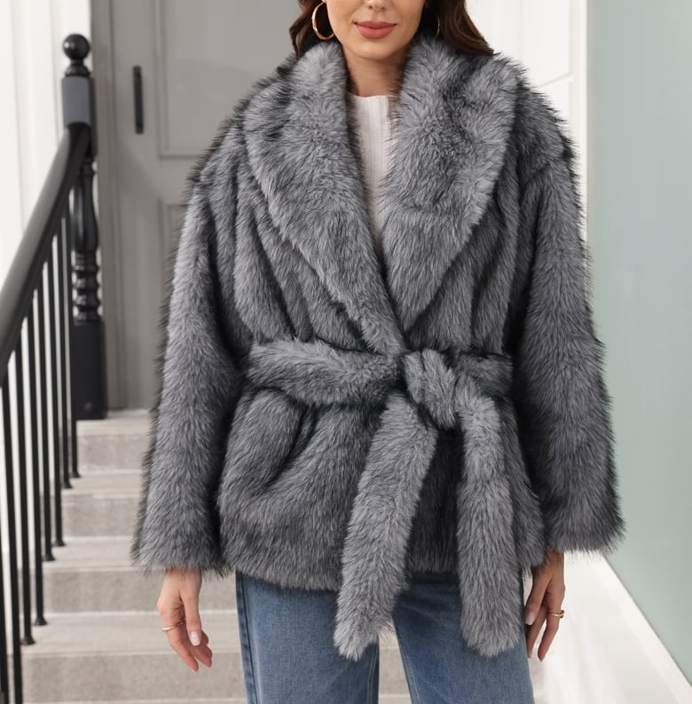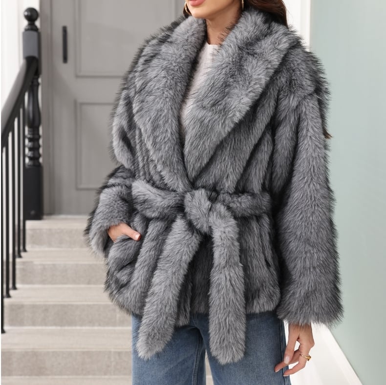 ▪優雅なミドル丈とフェイクファー生地が、まるで本物の毛皮のように肌を包み込む、あったかコートが入荷しました!ファーベルト付の前開きスタイル、襟付きのデザインがエレガントさを演出し、きれいめな印象を与えます。