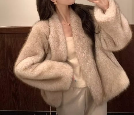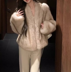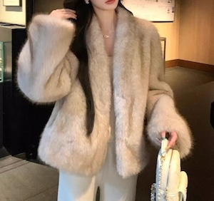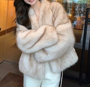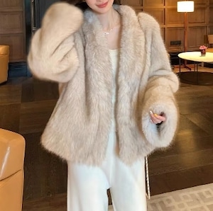 【送料無料】コート フェイクファー 韓国風 エレガント ルーズ 秋 冬 10代 20代 30代 レディース N1212