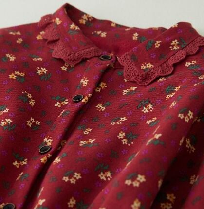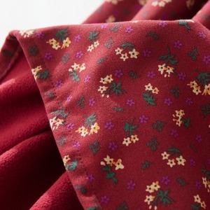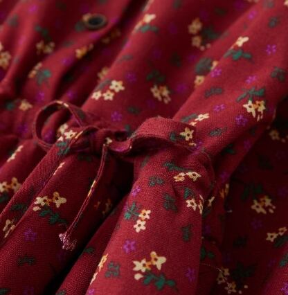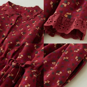 ▪ウエスト調整紐でルーズながらスタイルアップなシルエットも備えた、このワンピースは、長袖に襟付きのデザインでエレガントな印象を与えます。Aラインのフレアスカートが女性らしさを引き立て、小花柄が一層可愛らしさを加えています。