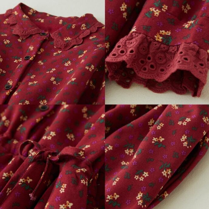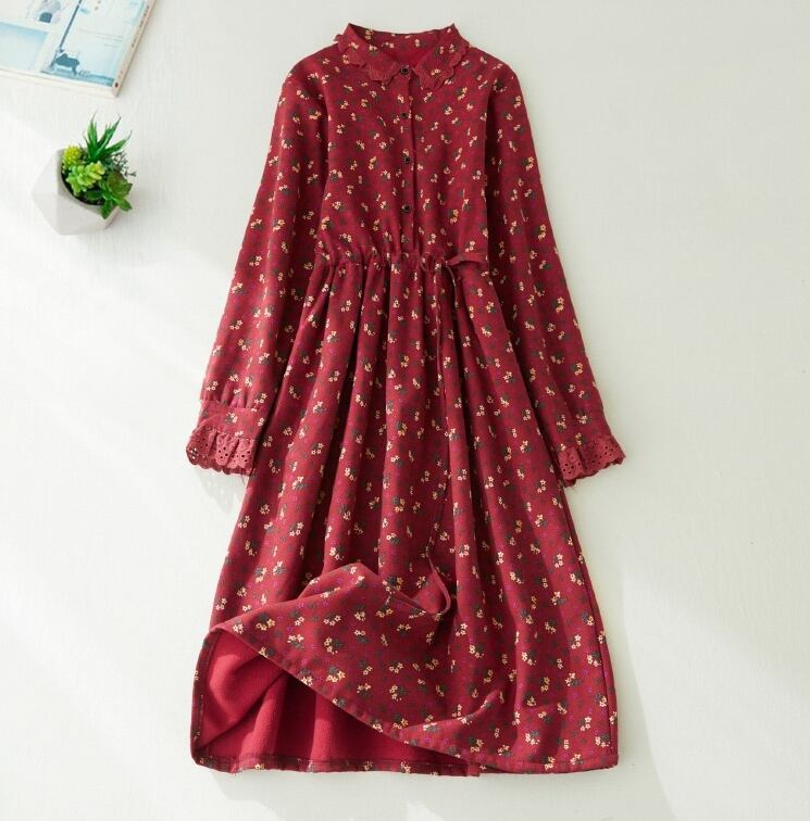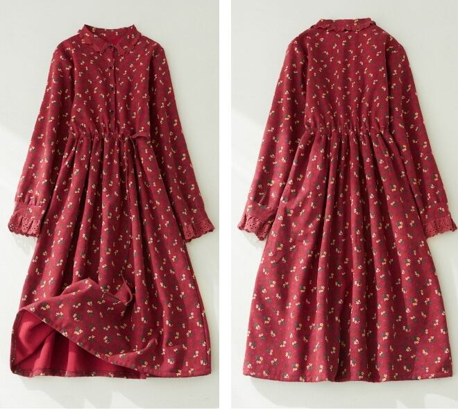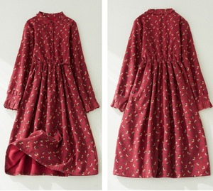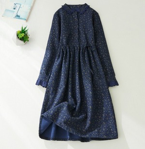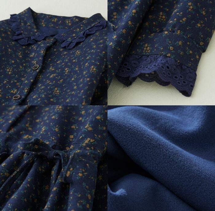【送料無料】 ワンピース ワンピドレス ウエスト調整紐 ルーズ リボン ロング丈 長袖 襟付き ハイウエスト フレア Aライン小花柄 フリース 厚手 きれいめ エレガント 大人可愛い シンプル おしゃれ シック 存在感 フェミニン ガーリー 韓国風 オルチャン 人気 トレンド 新作 秋 冬 20代 30代 40代 お出かけ イベント 旅行 リゾート デート ママ デイリー オフィス OL 通勤 通学 普段着 着回し インスタ映え 70370
