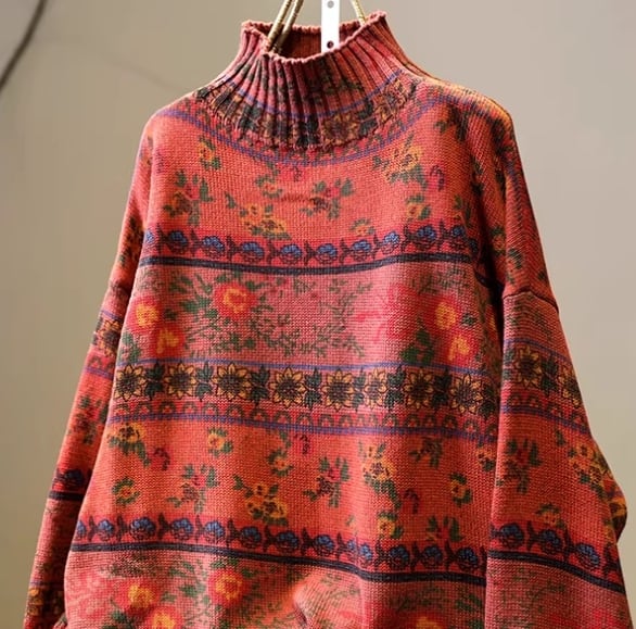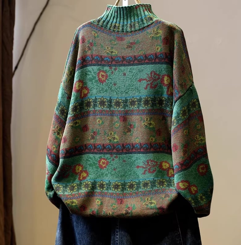 ▪このセーターは、柔らかなコットン素材で作られており、ハイネックデザインや長袖のあたたかさが特徴です。ストライプと可愛らしい花柄が、エレガントでありながら大人可愛い印象を与え、存在感のある一着に仕上がっています!
