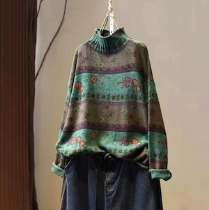 【送料無料】 トップス セーター ニット コットン 長袖 ハイネック プルオーバー ストライプ 花柄 ゆったり きれいめ エレガント 大人可愛い シンプル おしゃれ シック 存在感 フェミニン ガーリー 韓国風 オルチャン 人気 トレンド 新作 秋 冬 20代 30代 40代 お出かけ イベント 旅行 リゾート デート ママ デイリー オフィス OL 通勤 通学 普段着 着回し インスタ映え 70373