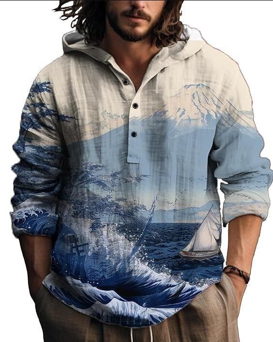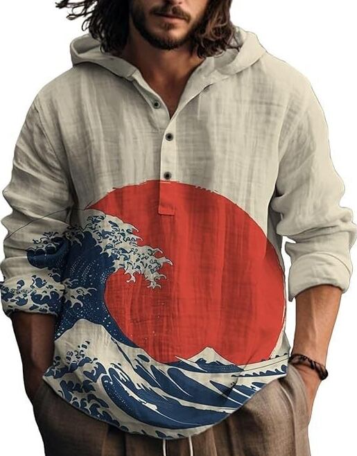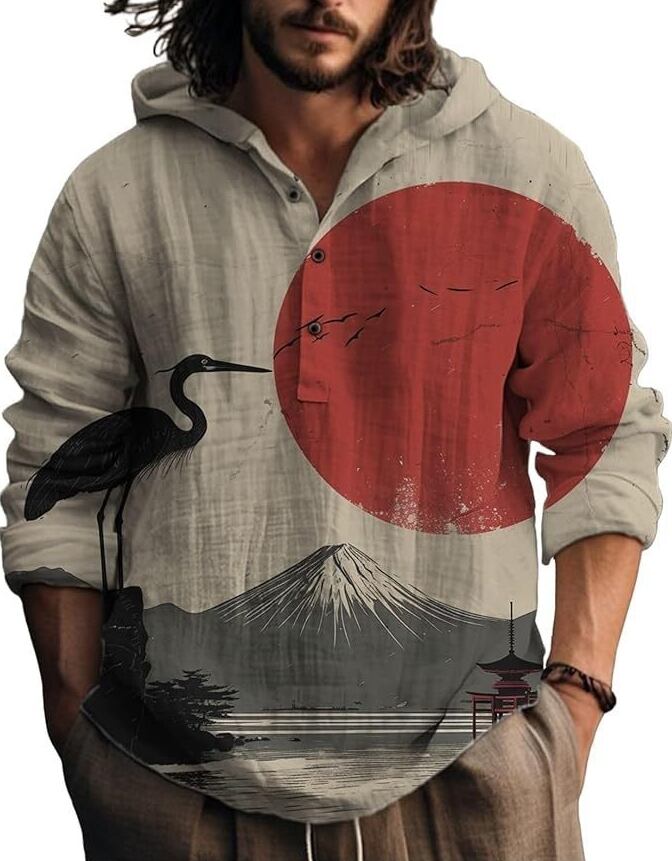 和の美しさと現代デザインが融合した、着物風フード付きトップス