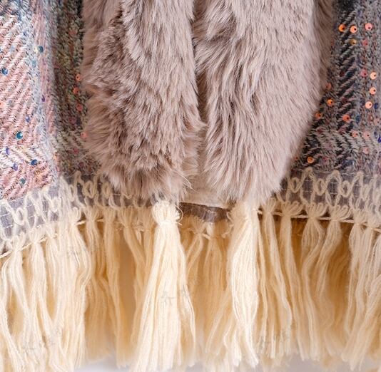 ▪このポンチョは、アクリル人工ウール素材を使用し、ファーとフリンジが特徴的です。シンプルながらもエレガントな印象を与え、大人可愛いスタイルを引き立てます!ロング丈で秋冬のコーディネートにぴったりのアイテムです。