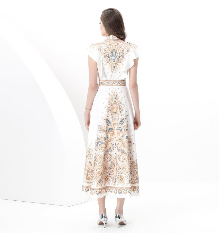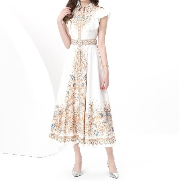 【送料無料】 ワンピース ワンピドレス 襟付き フリルスリーブ 半袖 ベルト ハイウエスト 花柄 ロング丈 フレアスカート Aライン きれいめ カジュアル エレガント 大人可愛い シンプル おしゃれ シック 存在感 フェミニン ガーリー 韓国風 オルチャン 人気 トレンド 新作 春 夏 20代 30代 40代 お出かけ イベント 旅行 リゾート デート ママ デイリー オフィス OL 通勤 通学 普段着 着回し インスタ映え 70386