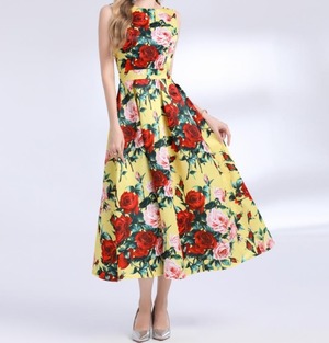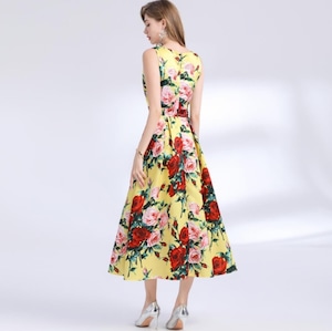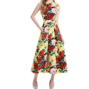 ▪この春夏にぴったりな、華やかなローズ柄のワンピースです!ラウンドネックとノースリーブデザインは、清楚でありながら女性らしさを引き立てます。ハイウエストスタイルで、スタイルアップを実現します!ロング丈のフレアスカートは、動くたびに優雅な印象を与え、エレガントさも兼ね備えています。
