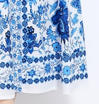 ▪一着で春夏のスタイルが完成する、きれいめでエレガントな雰囲気を持つワンピースです。ブルーフラワープリントで華やかな印象を演出。ウエストベルト付きなので、シルエットを美しく見せつつ、スタイルアップも実現。さらに、ロング丈のAラインスタイルで、フレアスカートの軽やかな動きが、歩くたびに女性らしさを引き立てます。