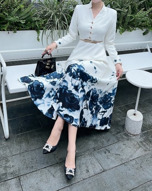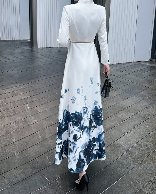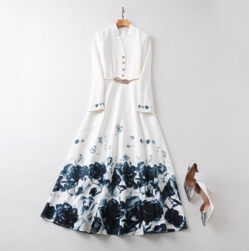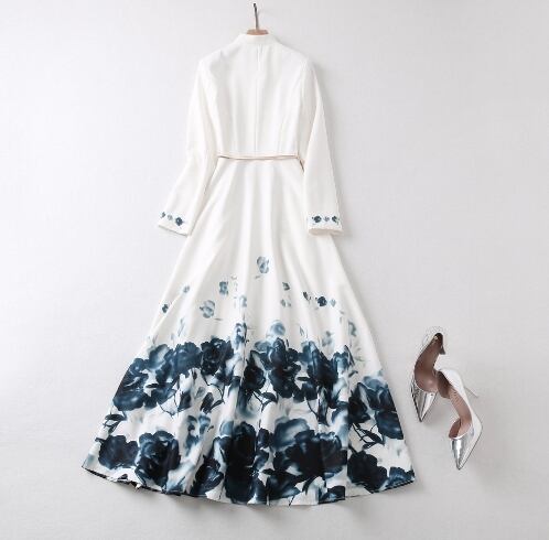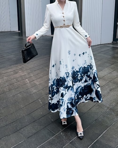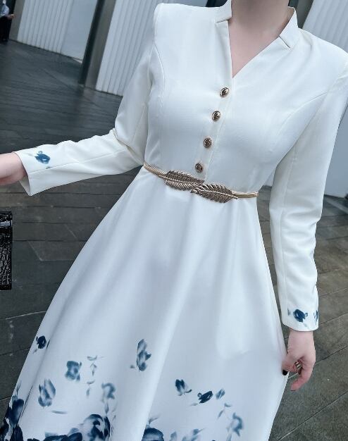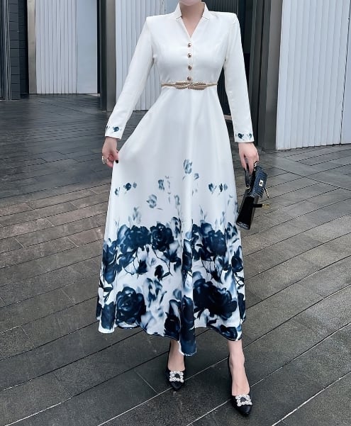 長袖のロング丈ワンピースは、女性らしさを引き立てる一着です。