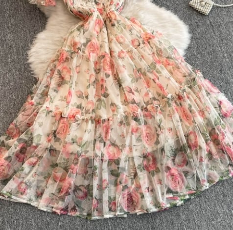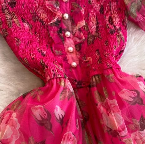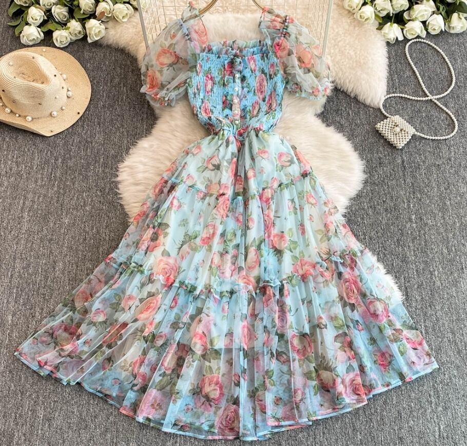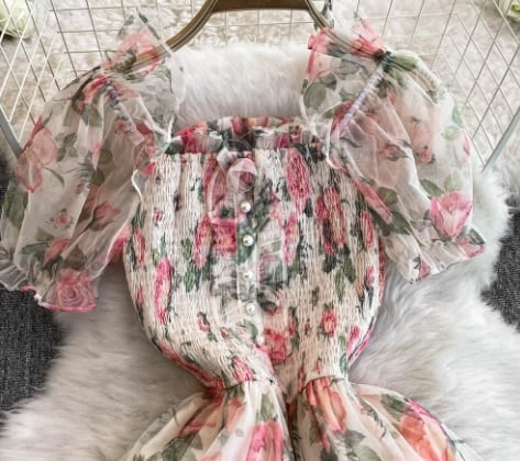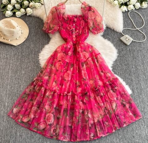 【送料無料】ワンピース 半袖 ロング丈 スクエアネック 花柄 大人可愛い 上品 レトロ 秋 10代 20代 レディース N1223