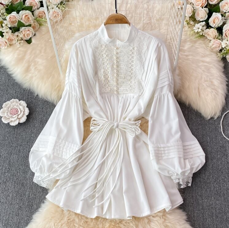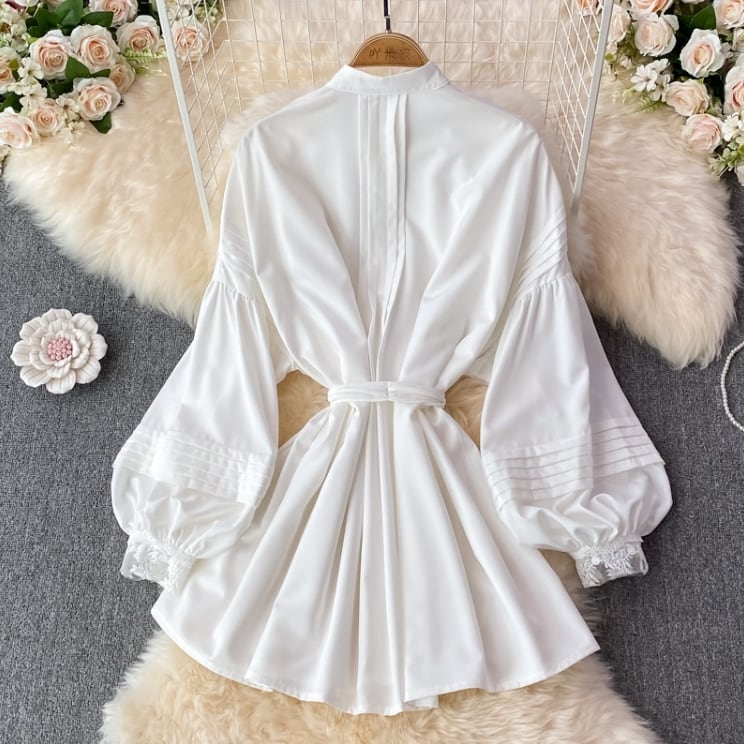 【送料無料】 トップス カーディガン ベビードールドレス ハイネック 長袖 ランタンスリーブ ウエスト紐リボン スタイルアップ フリル ヴィンテージ風 きれいめ カジュアル エレガント 大人可愛い おしゃれ 存在感 フェミニン ガーリー 韓国風 オルチャン 人気トレンド 新作 春 夏 20代 30代 40代 お出かけ 部屋着 イベント 旅行 リゾート デイリー インスタ映え 70400