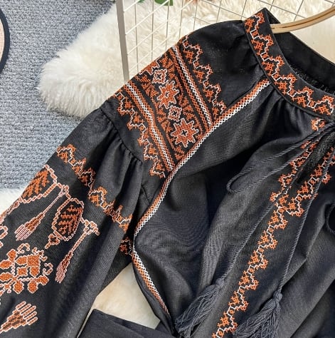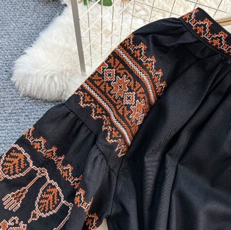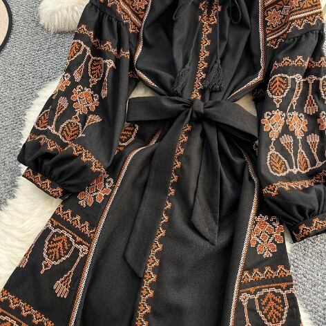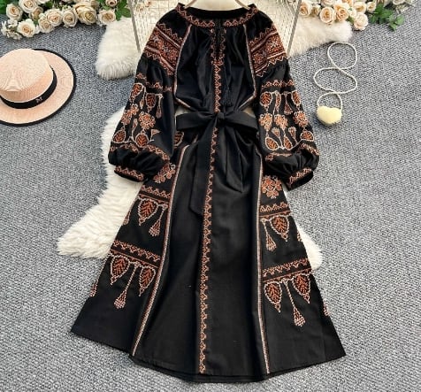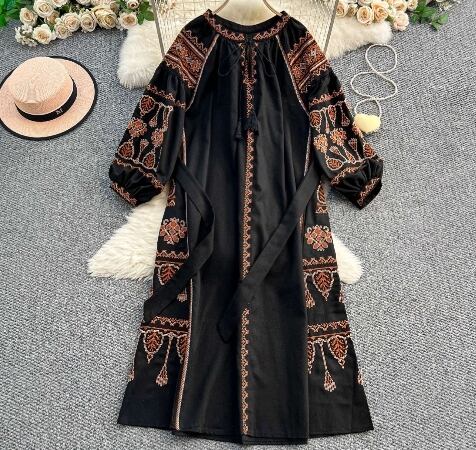 【送料無料】 ワンピース ロング丈 ランタンスリーブ 上品 きれいめ レトロ アジアン 20代 30代 レディース N1125