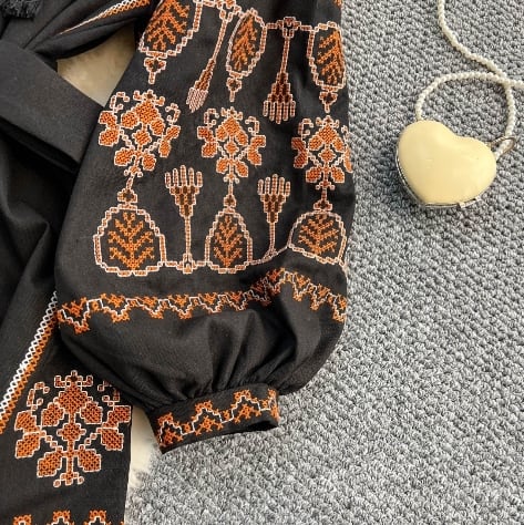 ロング丈にふんわりランタンスリーブが上品な印象を演出
