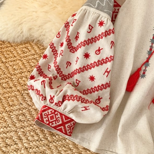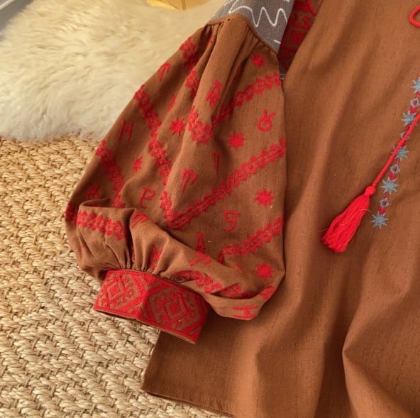 ふんわりとしたランタンスリーブが女性らしさを引き立てる一枚