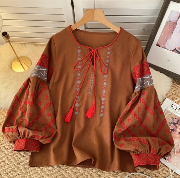 【送料無料】 トップス 長袖 ランタンスリーブ ラウンドネック ヴィンテージ 春 秋 10代 20代 30代 レディース N1126