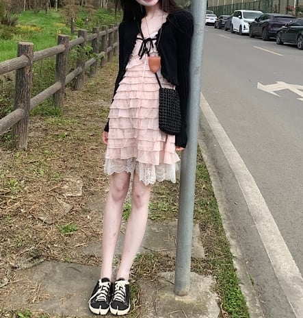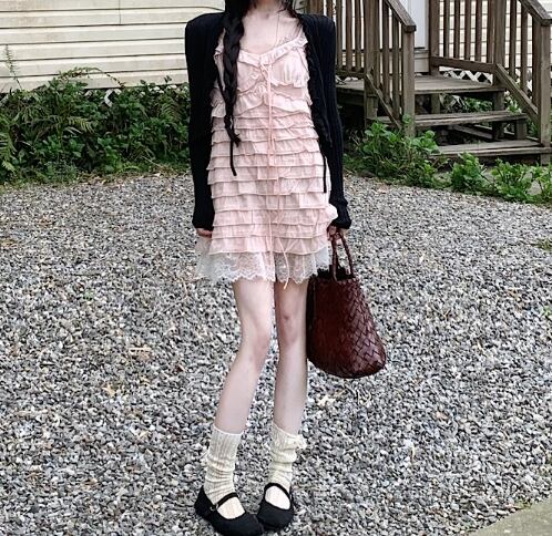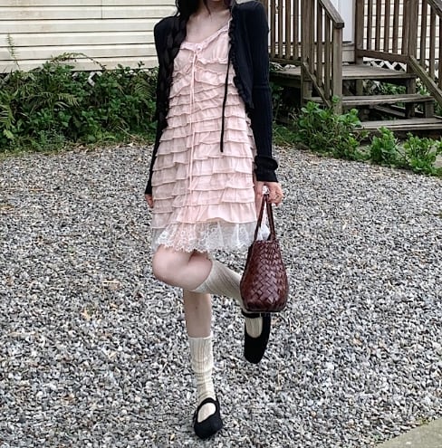 ワンピースとカーディガンで、簡単に完成するガーリースタイル