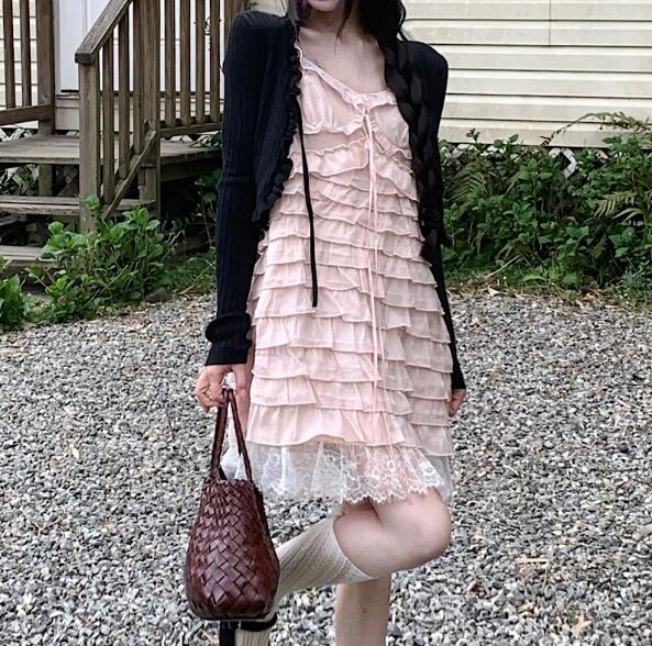【送料無料】 ワンピース カーディガン ショート丈 長袖 かわいい ガーリー おしゃれ シンプル 春 夏 10代 20代 レディース N1129