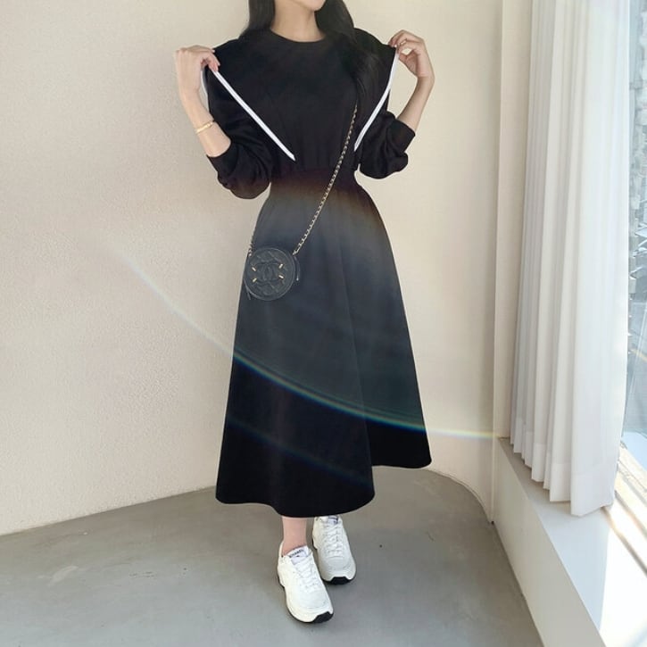 ▪この新作ワンピースは、ハイウエストのデザインがスタイルアップを演出し、ロングスカートのフレアAラインが動くたびに美しいシルエットを生み出します。ストレッチポリエステル素材を使用しており、あったかく快適な着心地が魅力です!
