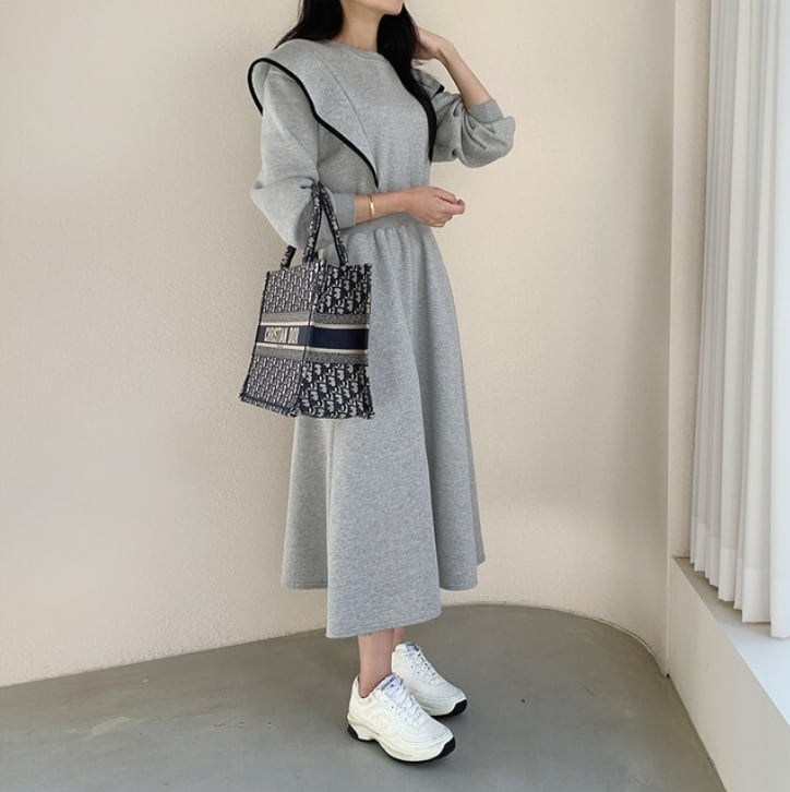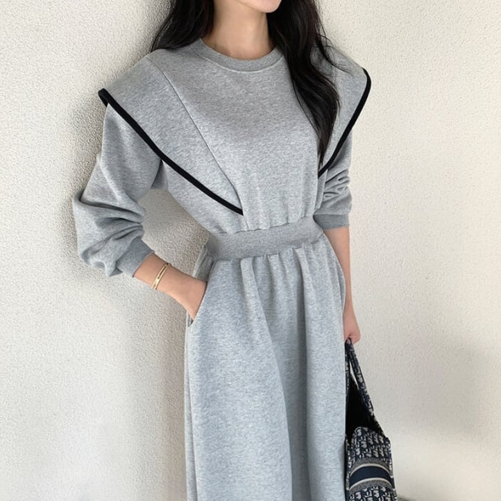 【送料無料】 ワンピース ワンピドレス プルオーバー ラウンドネック レギュラー袖 長袖 ハイウエスト ロングスカート フレア Aライン モノトーン ストレッチポリエステル あったか シック ゆったり きれいめ カジュアル エレガント 大人可愛い おしゃれ 存在感 フェミニン ガーリー 韓国風 オルチャン 人気 トレンド 新作 冬 10代 20代 30代 40代 お出かけ OL オフィス 通勤 通学 イベント 旅行 リゾート ママ デイリー 普段着 インスタ映え 70411