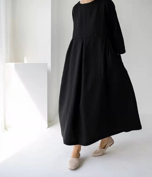 【送料無料】ワンピース ロング丈 長袖 ラウンドネック ルーズ カジュアル 10代 20代 30代 40代 レディース N1234
