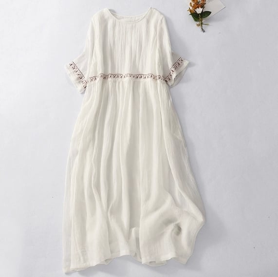 【送料無料】 ワンピース ワンピドレス ラウンドネック レギュラースリーブ 半袖 体系カバー ミディアムスカート フレア Aライン 麻 リネン きれいめ カジュアル エレガント 大人可愛い おしゃれ 存在感 フェミニン ガーリー 韓国風 オルチャン 人気 トレンド 新作 夏 10代 20代 30代 40代 お出かけ OL オフィス 通勤 通学 イベント 旅行 リゾート ママ デイリー 普段着 インスタ映え 70415
