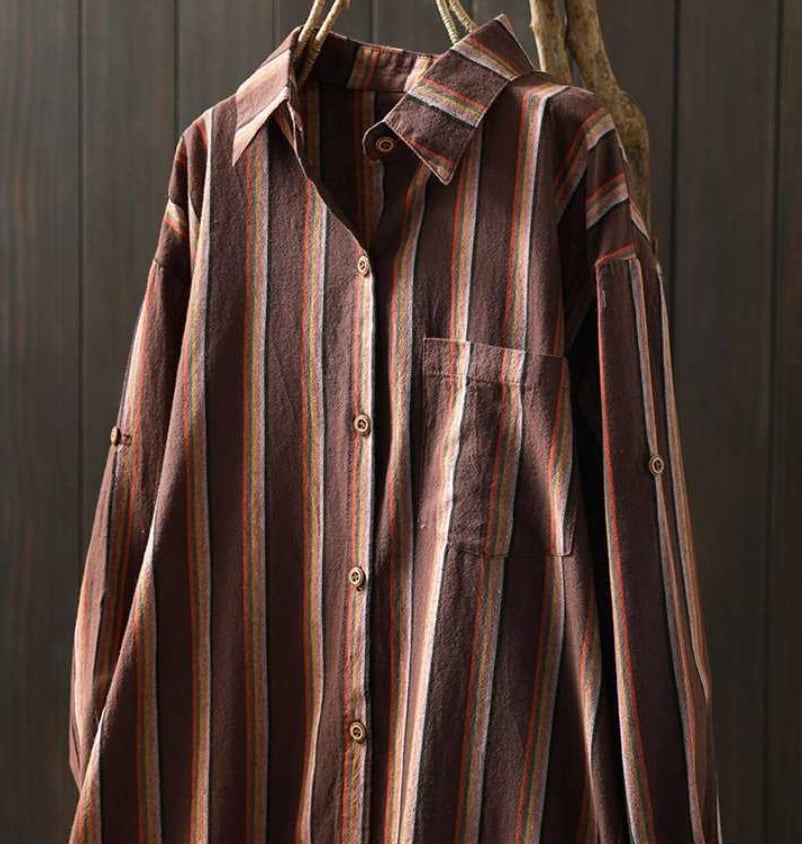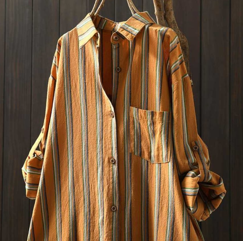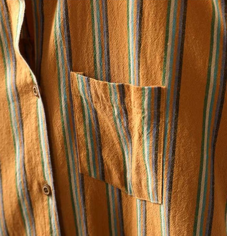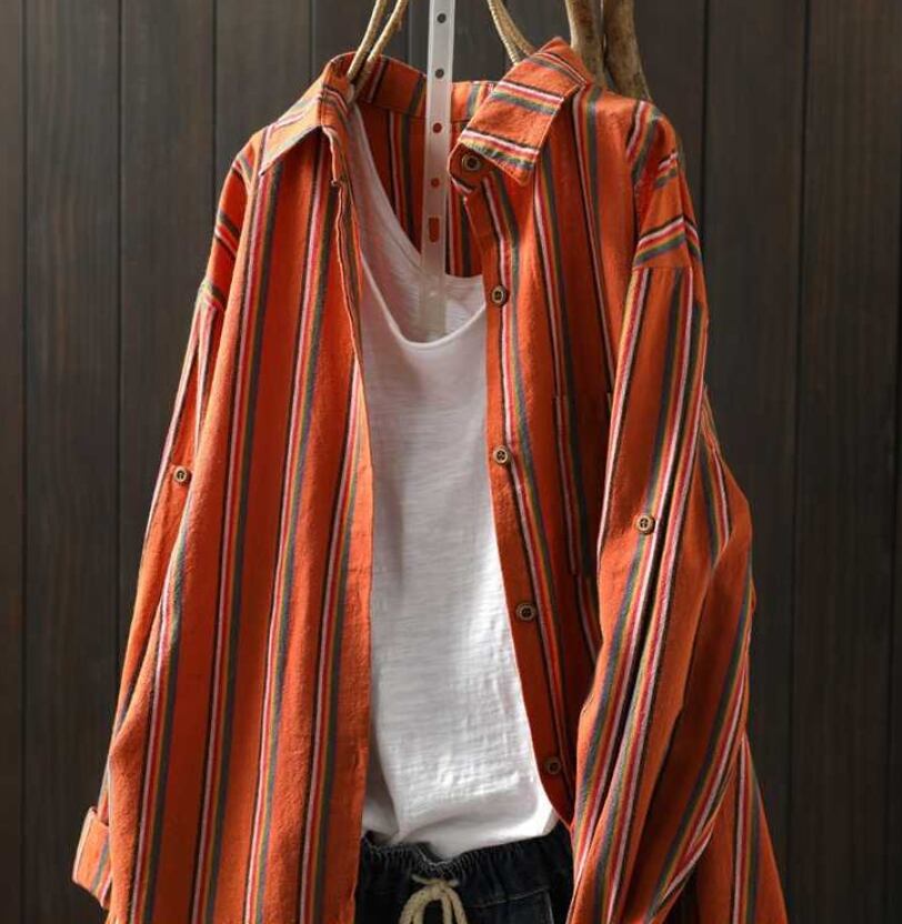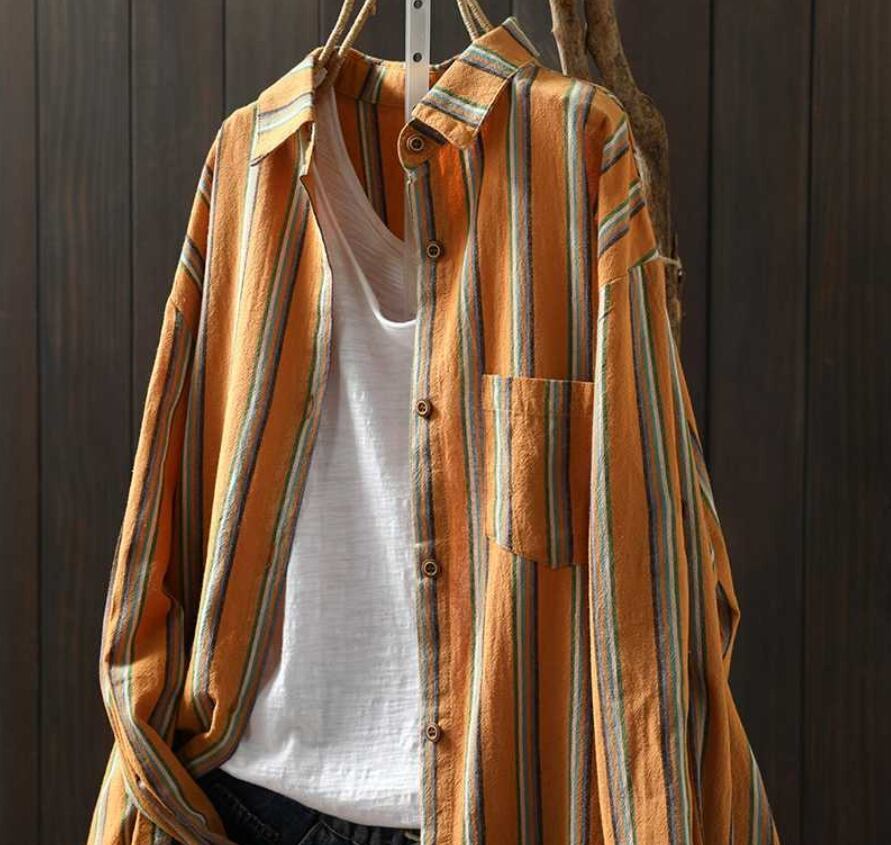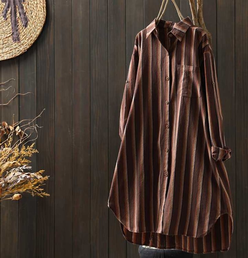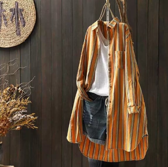 ▪スタイルを華やかに引き立てるシャツワンピース!前開きデザインとボタン、洗練されたストライプ柄に、襟付きで上品さをプラス。ストレートなシルエットは体系をカバーしながら、フレアなデザインが女性らしさを引き立てます。