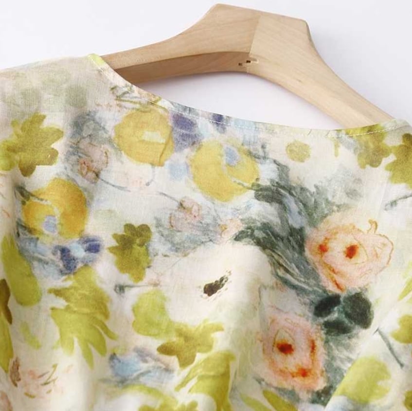 ▪花柄デザインとリネンコットン素材が調和し、肌触りも快適で、カジュアルなシーンからきれいめまで、様々な場面で活躍します。