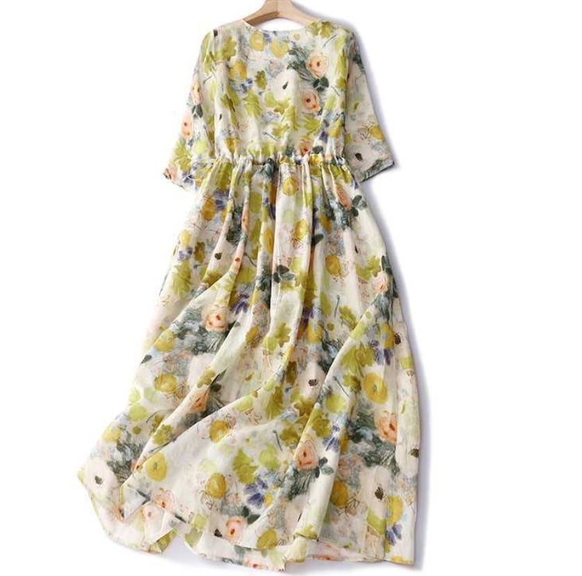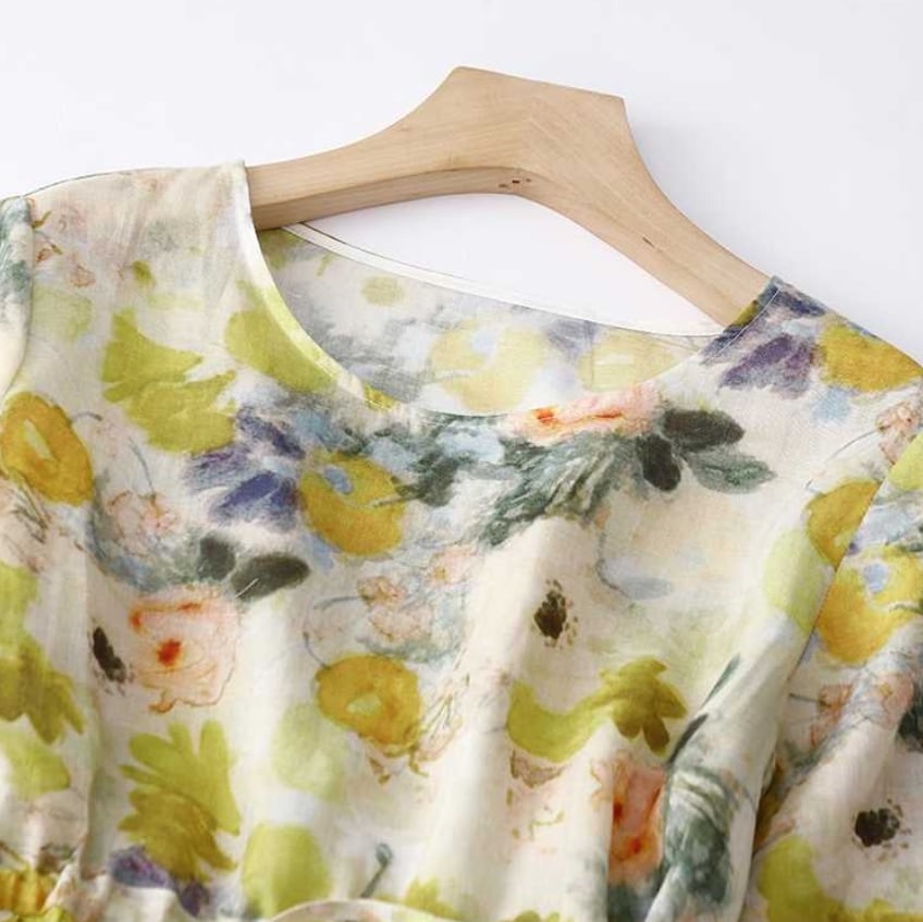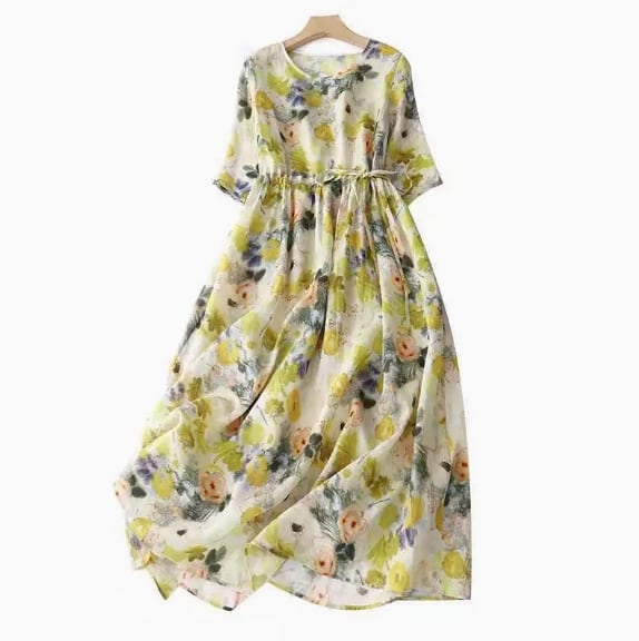 【送料無料】 ワンピース ワンピドレス ラウンドネック レギュラースリーブ 五部袖 ウエストリボン スタイルアップ ミディアムスカート ミッドライズ フレア Aライン 花柄 麻 リネン 綿 コットン ゆったり きれいめ カジュアル エレガント 大人可愛い おしゃれ 存在感 ガーリー 韓国風 オルチャン 人気 トレンド 新作 春 夏 20代 30代 40代 50代 お出かけ OL オフィス 通勤 通学 イベント 旅行 リゾート ママ デイリー 普段着 インスタ映え 70419
