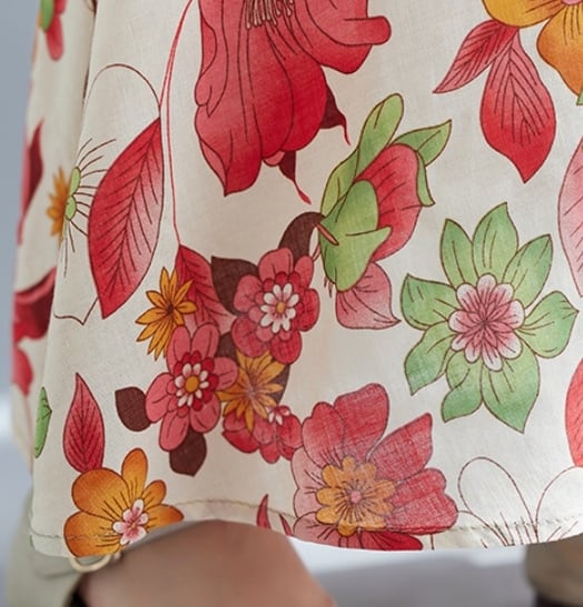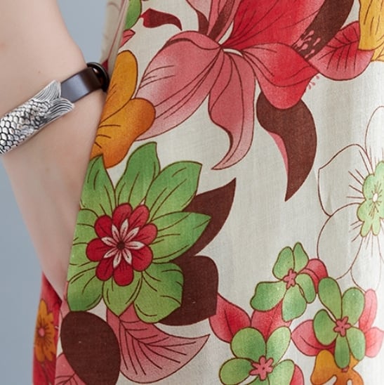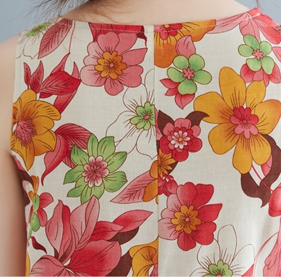 ▪夏のお出かけにぴったりな、華やかな花柄が印象的なワンピースで、リネンとコットンの組み合わせが心地よい肌触りを実現しています。ラウンドネックとノースリーブデザインは、カジュアルでありながらもきれいめに仕上がっており、さまざまなシーンで活躍します。ストレートなフレアAラインで、動きやすく、ゆったりとしたシルエットが女性らしさを引き立てます。
