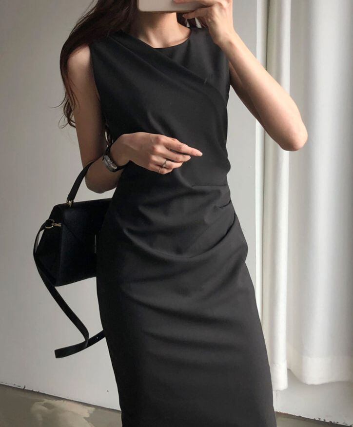 ノースリーブ シンプル 3017 ブラウン ブラック S M L ヘップバーン ヒップドレス おしゃれ カジュアル きやせ 着やせ 着痩せ 膝丈 ひざ丈 すっきり 痩せ見え ドレス 上品 ワンピース パーティ 発表会 無地 レディース フェミニン カーキ 茶色 サマー 夏 秋 冬 春 ミモレ 結婚式 パーティー ノースリ 袖なし ウェディング 送料無料