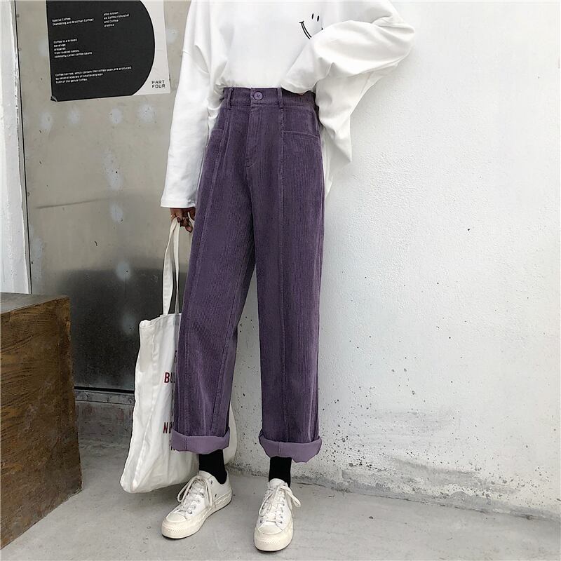 ハイウエストコーデュロイパンツ 5304 ボトムス パンツ ワイドパンツ ベイカーパンツ ロング ロング丈 ワイド ポケット ハイウエスト ウエストゴム コーデュロイ かわいい 大人可愛い シンプル カジュアル 大人 おしゃれ お洒落 かっこいい 大人可愛い 大人女子 こなれ感 ラフ メンズライク ボーイッシュ 個性的 主役級 存在感 無地 秋 冬 10代 20代 30代 レディース 学生 通学 デート お出かけ 公園デビュー 女子会 休日 着回し 韓国 サイズ S M L 紫 パープル 送料無料