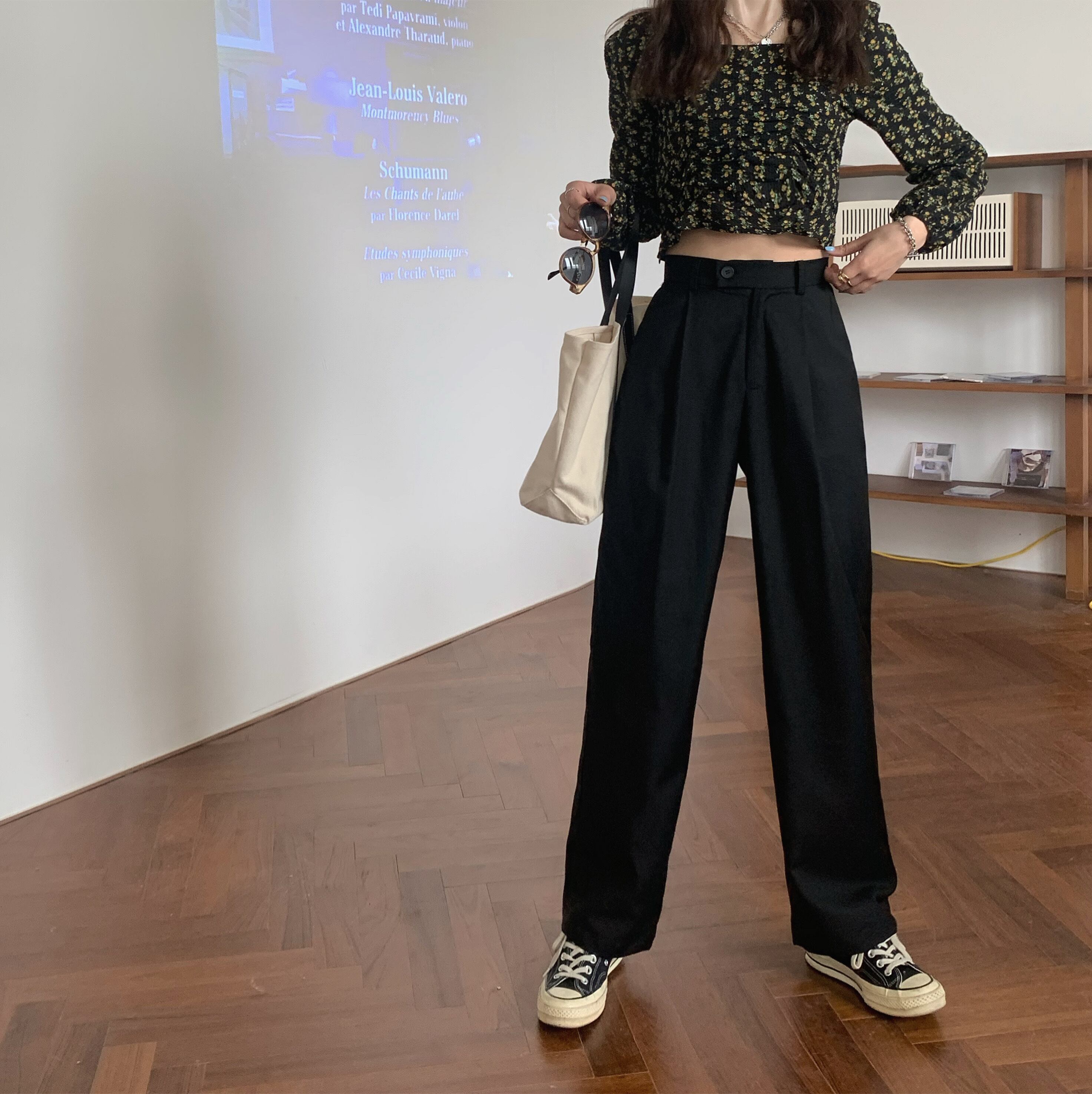 ハイウエストでシルエットの綺麗なスラックスパンツ。