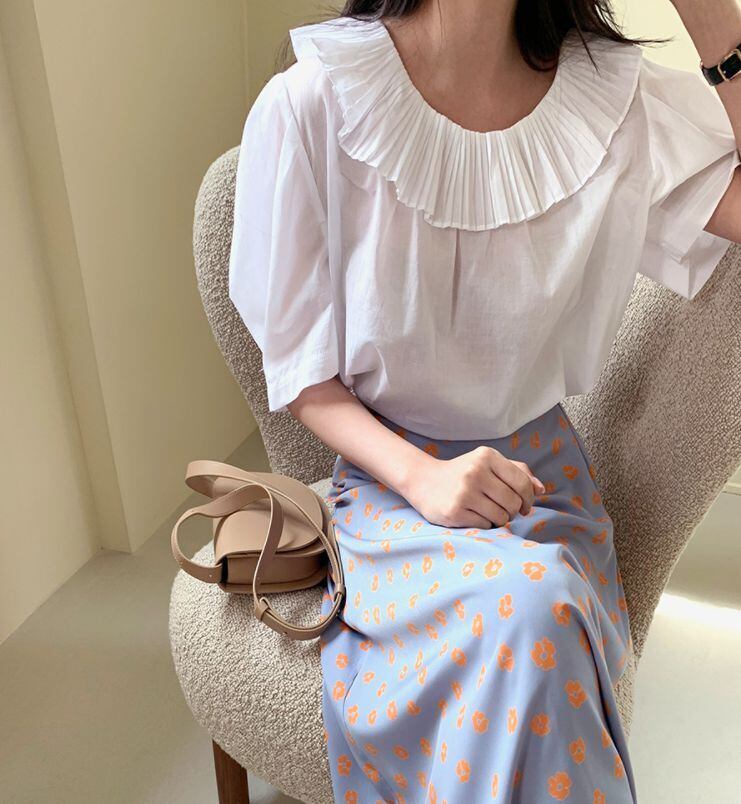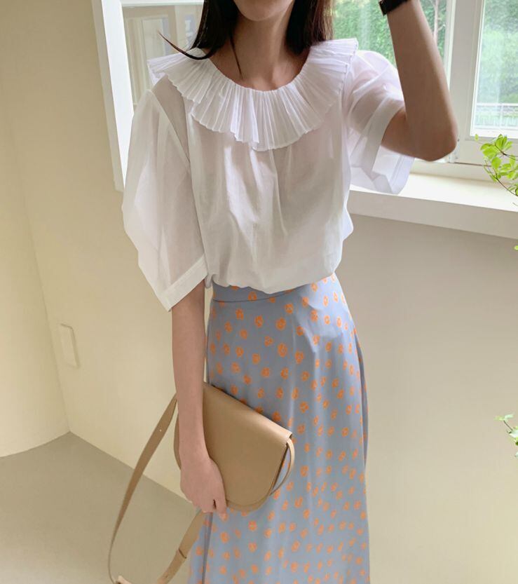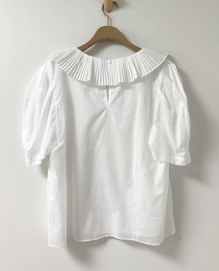 トップス ブラウス ミディアム丈 20021 袖あり 半袖 パフスリーブ ラウンドネック 襟付き プリーツ ワイド ポリエステル 薄手 かわいい 大人可愛い きれいめ 大人 上品 おしゃれ 大人可愛い 大人女子 ラブリー キュート ガーリー 無地 春 夏 20代 30代 レディース デート お出かけ 女子会 休日 パーティー イベント 海 プール 着回し 普段使い 韓国系 ファッション モテ 体系カバー トレンド フリーサイズ 色展開 ホワイト ブラック 送料無料