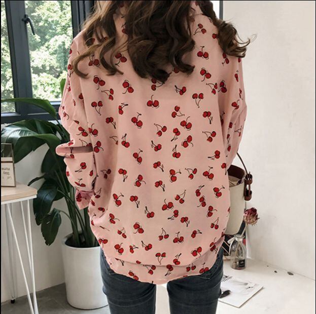 チェリー柄長袖 カジュアル 7141 シャツ レディース ビンテージシャツ ティーン おしゃれ 大きなサイズ ゆったりシャツ 可愛い 送料無料