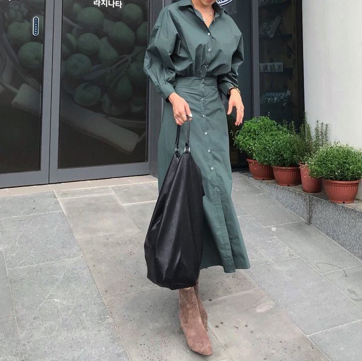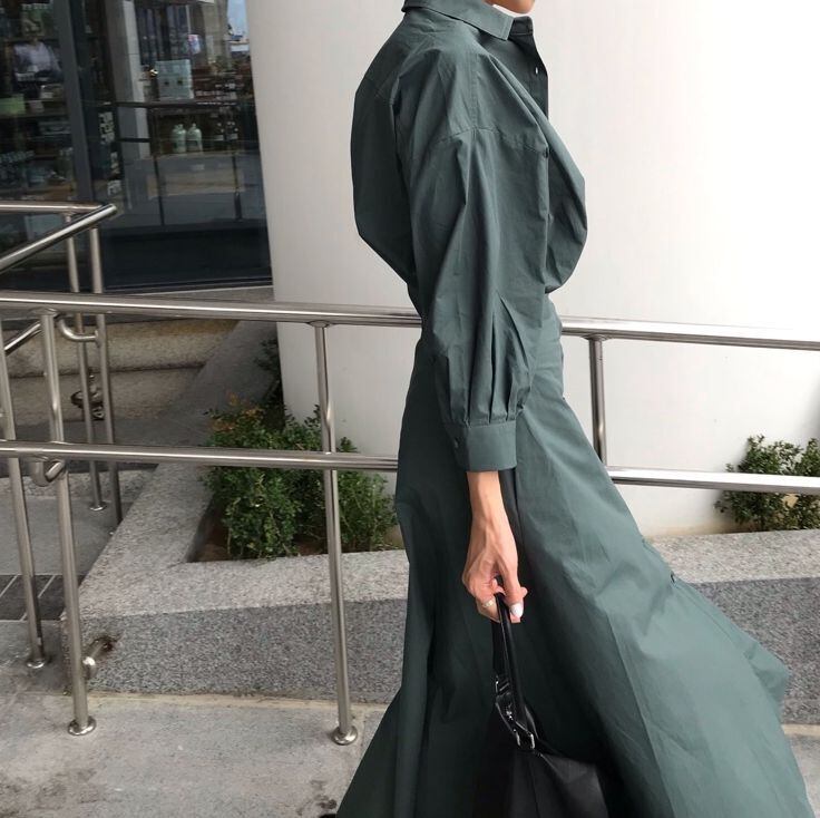 ロングシャツワンピース ワンピース 5340 シャツワンピース ロング ロング丈 マキシ マキシ丈 袖あり 長袖 ボリューム袖 襟付き フレア ウエストマーク 前開き かわいい 大人可愛い きれいめ シンプル カジュアル 大人 おしゃれ お洒落 大人可愛い 大人女子 ラブリー キュート ガーリー 主役級 存在感 無地 春 秋 10代 20代 30代 レディース 学生 通学 デート お出かけ 女子会 休日 着回し 普段使い 重ね着 韓国 サイズ S M 大きいサイズ 色展開 グリーン アプリコット 送料無料