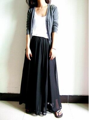 幅広いコーディネートに使える万能シフォンスカート♪
