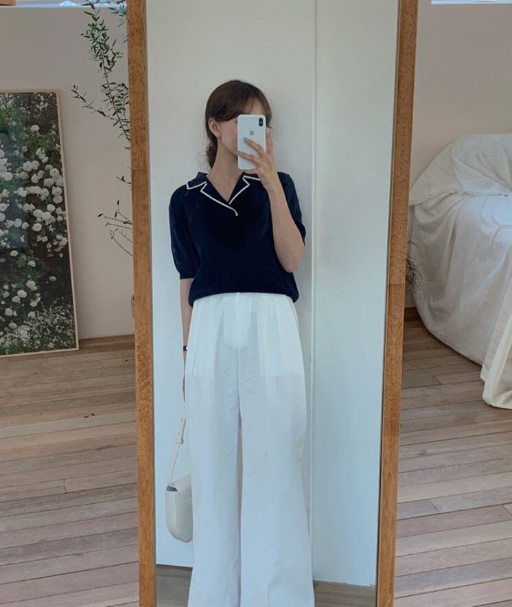 トップス ニットソー ミディアム丈 20066 袖あり 半袖 Vネック 襟付き ストレート リブニット サマーニット かわいい 大人可愛い シンプル カジュアル おしゃれ 大人可愛い 大人女子 ラフ 無地 春 夏 2021 10代 20代 レディース 学生 デート お出かけ 休日 リゾート 旅行 海 プール ガーデン 着回し 普段使い オルチャン ファッション モテ 新作 定番 フリーサイズ 色展開 ホワイト 送料無料