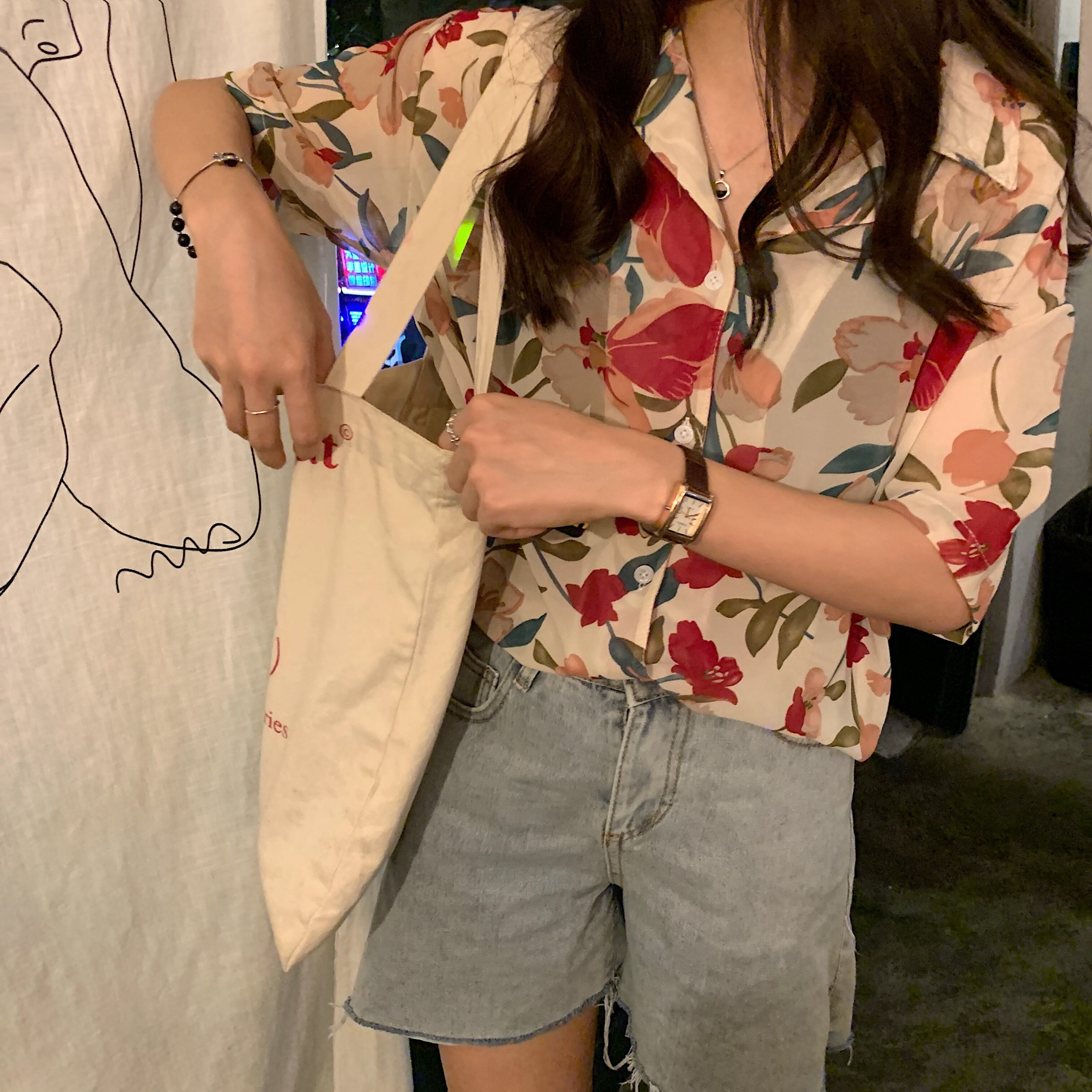 花柄開襟シャツ トップス シャツ 5410 袖あり 半袖 Vネック 襟付き 前開き かわいい 大人可愛い シンプル カジュアル 大人 おしゃれ お洒落 大人可愛い 大人女子 こなれ感 ラブリー キュート ガーリー 個性的 主役級 存在感 抜け感 柄 花柄 フラワー 春 夏 10代 20代 30代 レディース 学生 通学 公園デビュー 女子会 休日 着回し 普段使い 重ね着 色展開 黒 ブラック アプリコット 送料無料