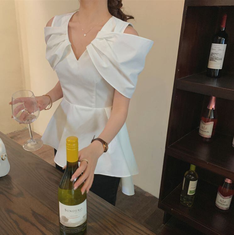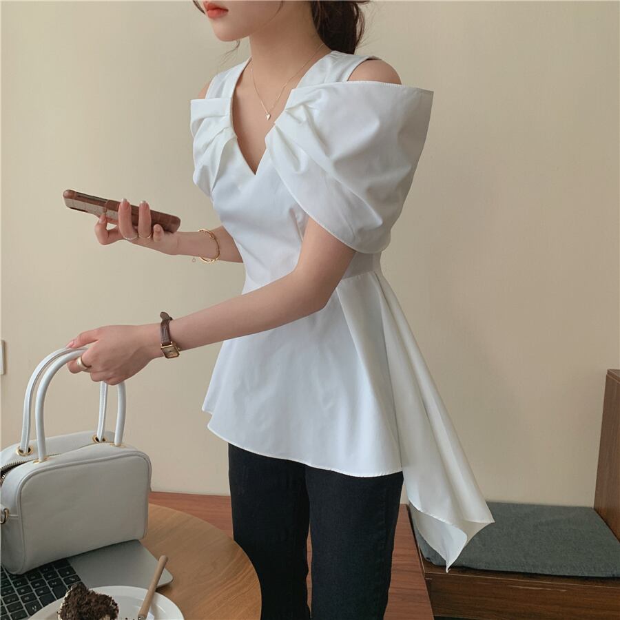 トップス シャツ ミディアム丈 袖あり 20076 オープンショルダー Vネック 襟付き ペプラム ハイウエスト 薄手 大人可愛い きれいめ シンプル 大人 上品 おしゃれ 大人可愛い 大人女子 セクシー エレガント 無地 春 夏 2021 20代 30代 レディース デート お出かけ 女子会 休日 パーティー イベント ホテル レストラン 着回し 普段使い 韓国系 ファッション モテ 新作 インスタ映え フリーサイズ ホワイト 送料無料