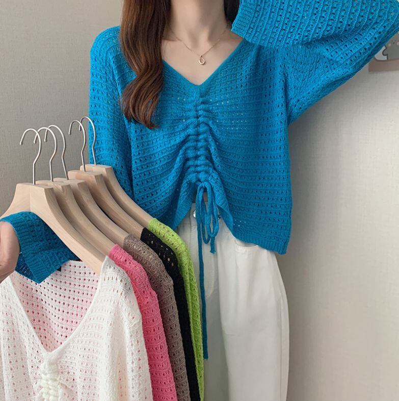 トップス ニットソー ショート丈 袖あり 20093 長袖 Vネック 襟付き ストレート ウエストマーク スリット 透け感 ウール 薄手 かわいい 大人可愛い シンプル おしゃれ 大人可愛い 大人女子 ラフ ラブリー キュート 個性的 セクシー 存在感 無地 夏 秋 10代 20代 レディース デート お出かけ 女子会 休日 パーティー イベント リゾート 旅行 海 着回し 普段使い オルチャン スタイル モテ トレンド インスタ映え サイズ S M L XL カラバリ豊富 送料無料