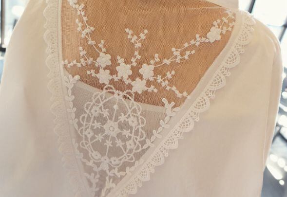 バックがシースルーのレース刺繍になったデザインブラウス♪