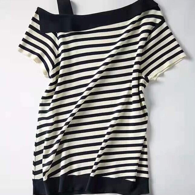 トップス Tシャツ ミディアム丈 袖あり 20144 半袖 オフショル 襟なし スリム ポリエチレン かわいい 大人可愛い 大人 おしゃれ 大人可愛い 大人女子 キュート ガーリー クール クラシカル ボーダー 春 夏 2021 20代 30代 レディース デート お出かけ 女子会 休日 イベント リゾート 旅行 海 着回し 普段使い 韓国系 ファッション モテ インスタ映え フリーサイズ ブラック 送料無料